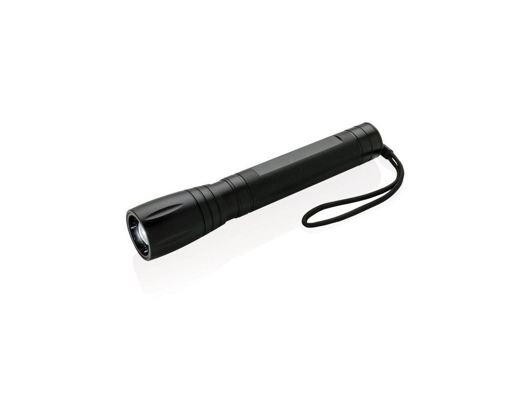 farba: čierna Rozmer: 3,8 x 20,3 cm. Hmotnosť: 411 g Podrobný popis: Odolné hliníkové svietidlo s 10 W LED svetlom Cree. S otáčacím mechanizmom pre nastavenie svetla na požadovanú veľkosť. S popruhom a tlačidlom zap./vyp. v hornej časti. Vrátane batérií.Dodatočné parametre