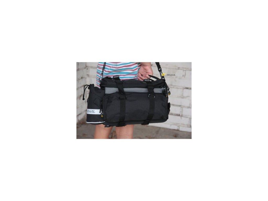 Športová brašňa na nosič pre cyklistov s nastaviteľným objemom sa pripevňuje k nosiču s hornou plochou u akéhokoľvek bicykla pomocou suchých zipsov. Taška má jednu veľkú tašku a štyri postranné. Taška má pogumovaný povrch, ktorý ju chráni proti poškrabaniu. Taška je tiež vodovzdorná, obsahuje vrecko na fľašu a hore na veku má sieťovanou vrecko s gumicukom. Súčasťou tašky je aj popruh, ktorý využijete pri jej prenášaní. 32 x 25 x 25 cm : : : : :Dodatočné parametre