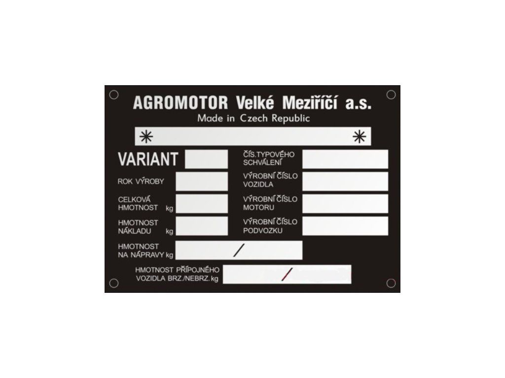 AGROMOTOR výrobný štítok