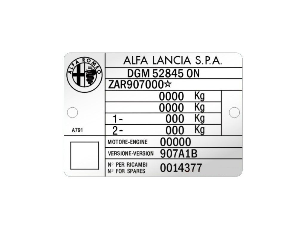 ALFA ROMEO - ALFA LANCIA S.P.A. výrobný štítok