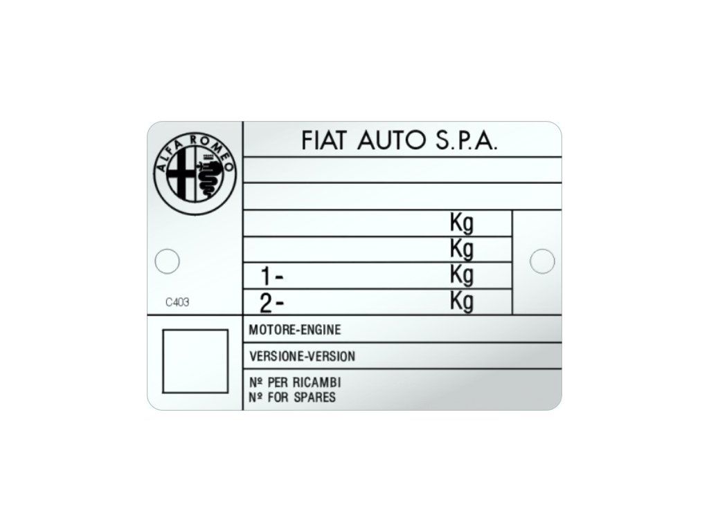 ALFA ROMEO - FIAT AUTO S.P.A. výrobný štítok
