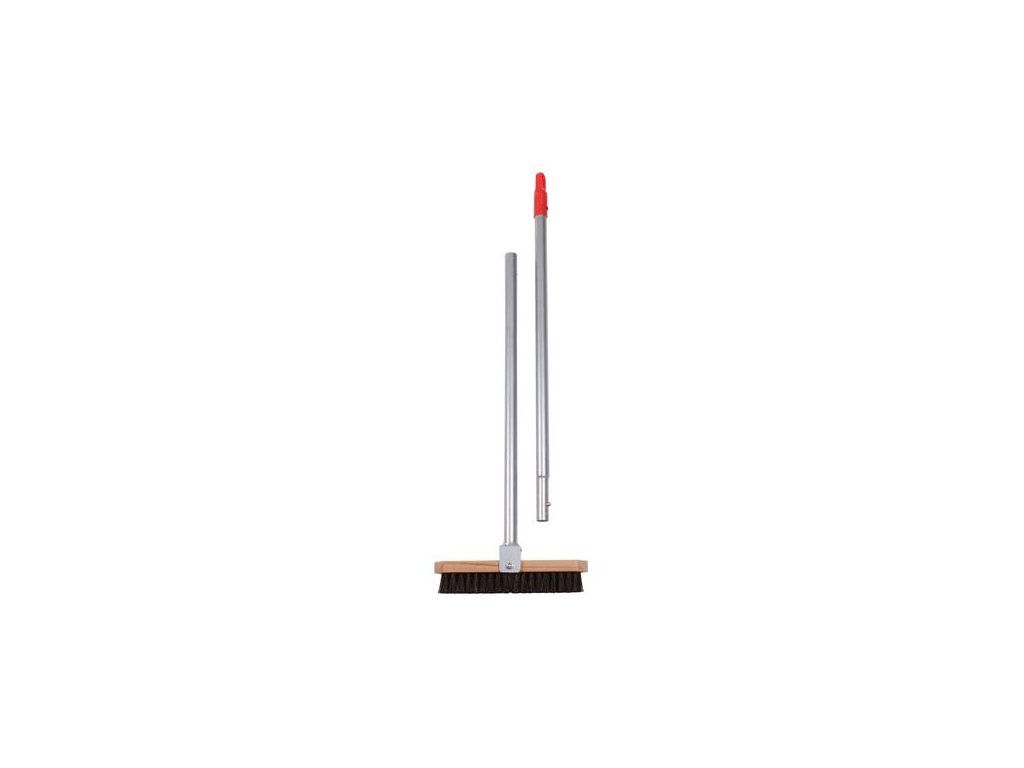 Pokiaľ máte na tenisovom kurte umelé lajny Geniala, potom budete určite potrebovať aj kefu na ich čistenie. Kefa s kovovou násadou na umelé lajny Merco Arenga s mäkšími štetinami ako má model Kunststoff je určená na pravidelnú údržbu tenisového kurtu. Drevená kefa má rozmery 28 x 4 cm, dĺžka hliníkovej násady je približne 125 cm s priemerom 2,5 cm. Dvojdielna skladacia násada je tiež skladnejšia ako klasická drevená násada. Vďaka kĺbovému upevneniu ku kefe odvediete vždy precíznu prácu pri čistení čiar. Kefa je vhodná pre lajny široké 4 a 5 cm. Doplňte si tenisové vybavenie spoločne s ďalšími modelmi sieťovačiek a metiel a udržujte tak kurt vždy perfektne čistý po každom zápase. : :Dodatočné parametre
