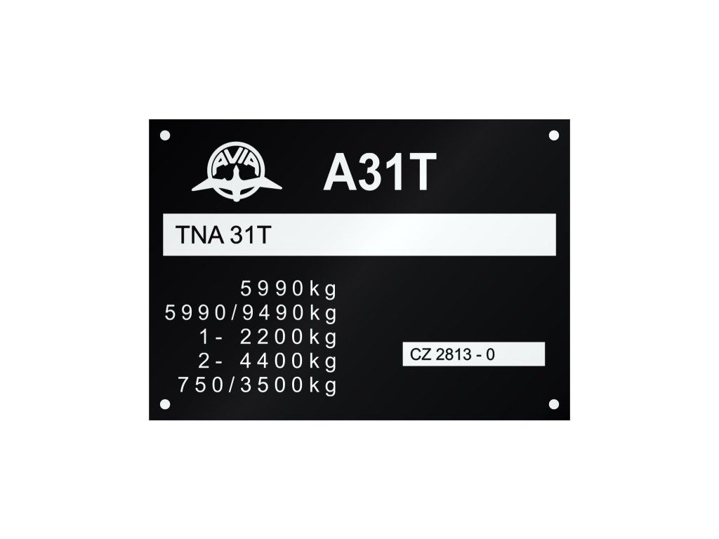 AVIA A31 T výrobný štítok