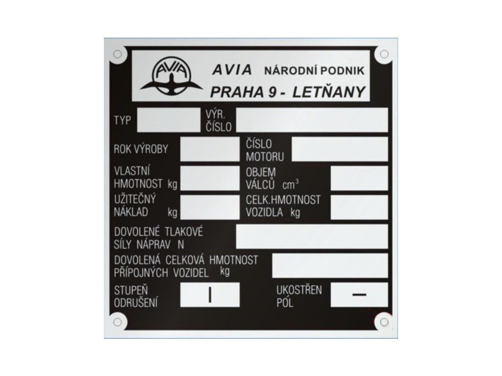 | Kategória: | Avia výrobné štítky |