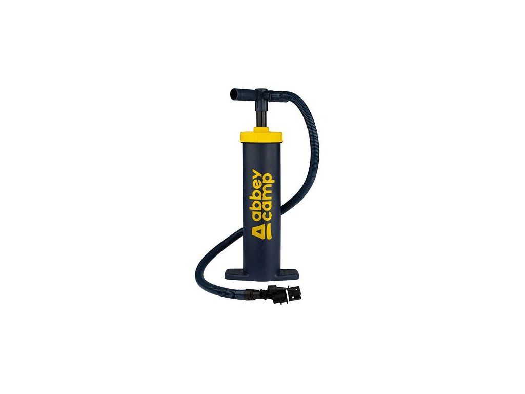 Dvojčinná ručná pumpa s piatimi rôznymi nástavcami Bell Air 2000 značky Abbey Camp vám uľahčí nafukovanie rôznych produktov ako nafukovací matrac, hračky do vody, nafukovacích lodí a raftov a pod. To sú 4 litre na cyklus, takže nafukovanie je skutočne rýchle. Uľahčite si si prácu s ručnou pumpou Bell Air 2000. - dvojčinná ručná pumpa - materiál: PP - 5 rôznych adaptérov (ventil 6 - 13 mm, ventil 9 - 13 mm, tryska 18 mm, 20 mm a tryska 21 mm) - objem: 2 x 2 litre (zdvih nahor a zdvih nadol) - dĺžka hadice: 100 cm - priemer hadice: 20 mm - tlak: 0,3 bar : :Dodatočné parametre