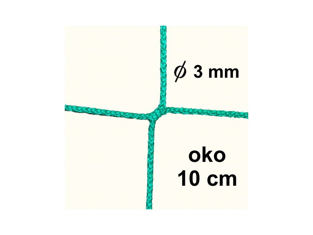 Bezuzlová sieť, 3 mm hrúbka, oko 10 cm, zelená farba