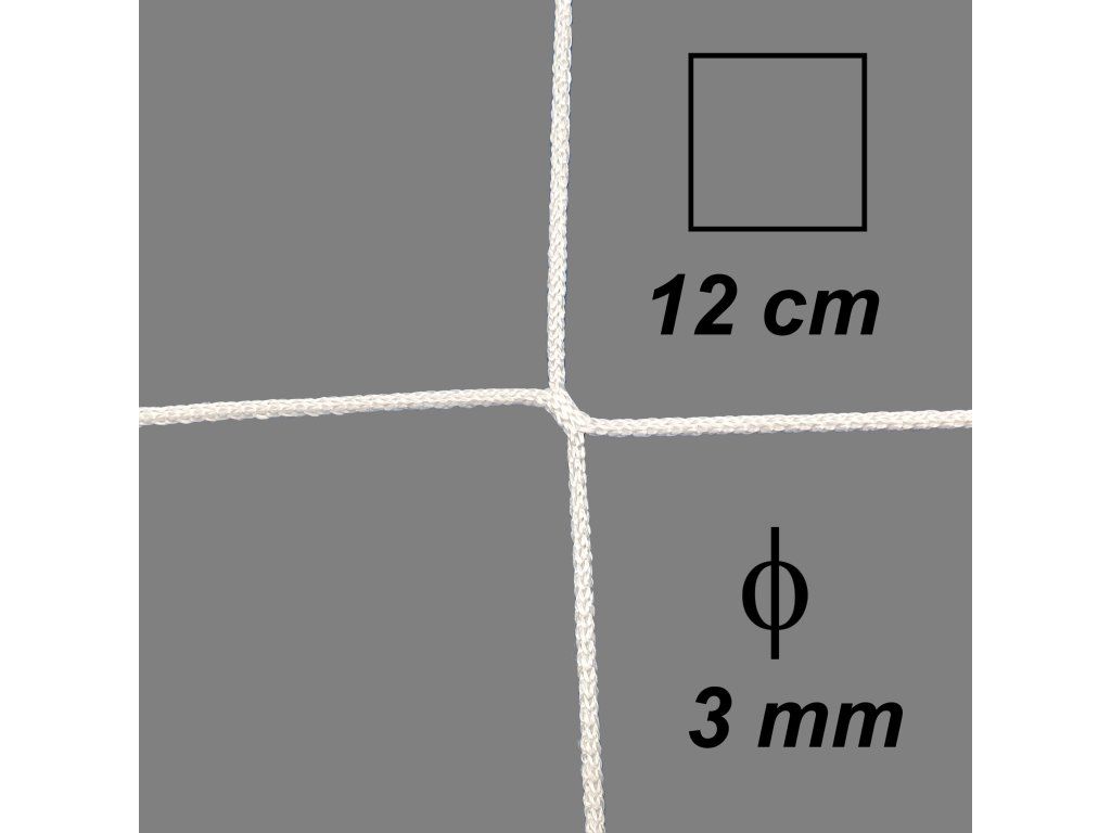 Bezuzlová sieť, 3 mm hrúbka, oko 12 cm, biela farba