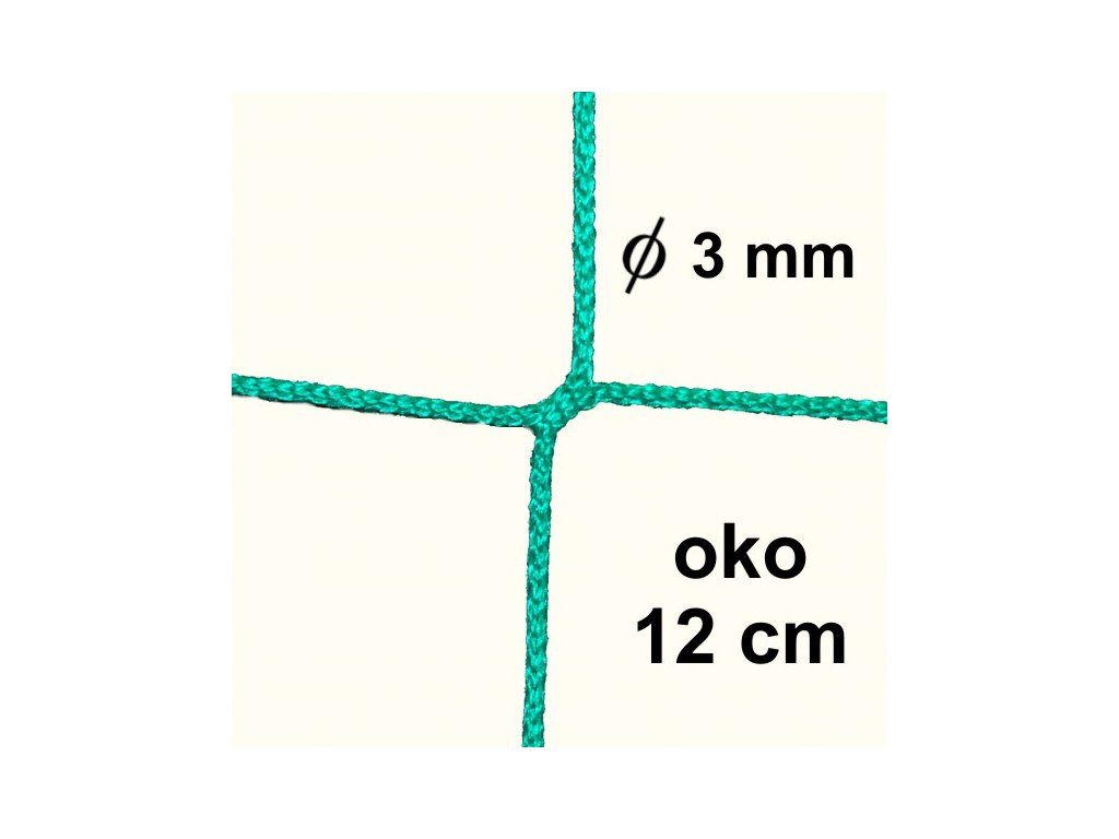 Bezuzlová sieť, 3 mm hrúbka, oko 12 cm, zelená farba