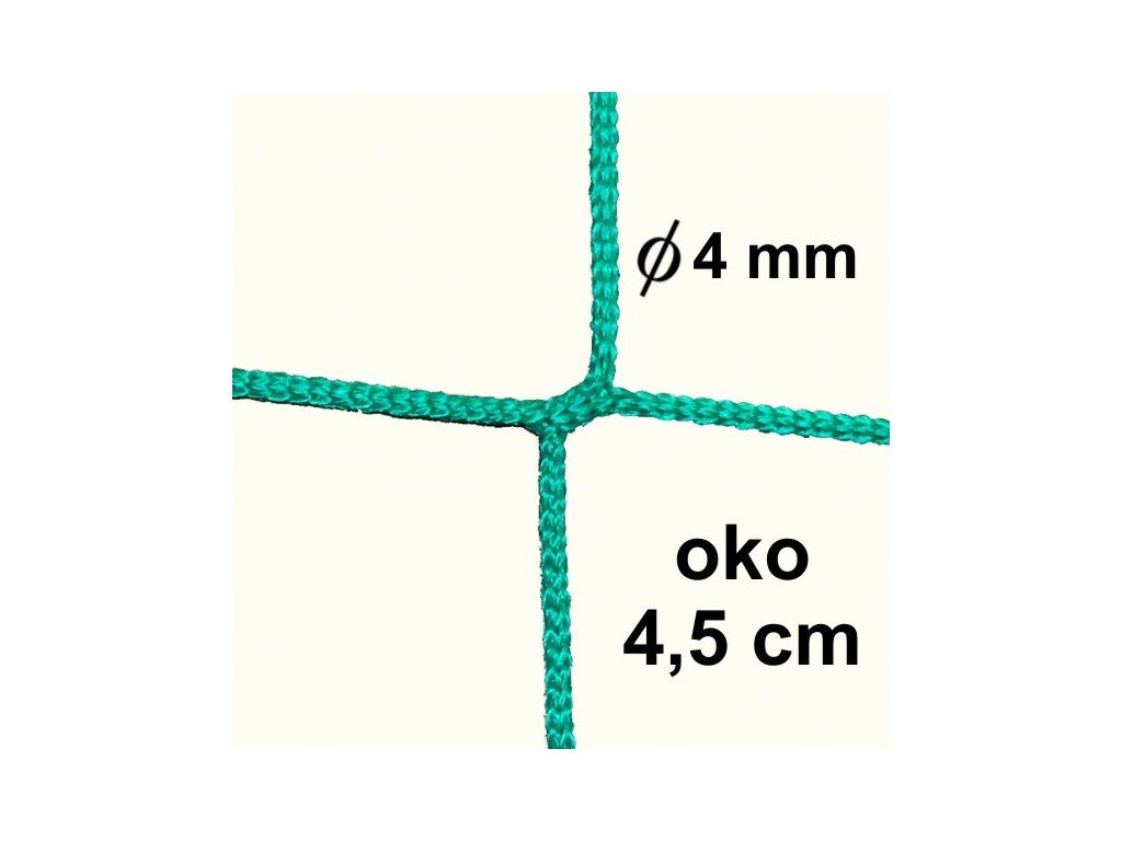 Bezuzlová sieť, 4 mm hrúbka, oko 4,5 cm, zelená farba