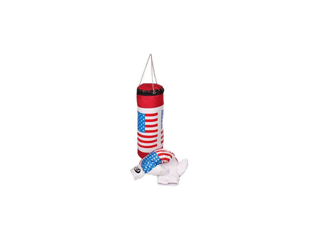 Detský boxovací set Teddies je vytvorený pre malých začínajúcich boxerov. Veďte svoje ratolesti už odmala k športu a zdravému pohybu a kúpte mu / jej tento boxovací set, ktorý zahŕňa boxovacie vrece s retiazkou a boxovacie rukavice s motívom americkej vlajky. Vrece má rozmery 45 x 15 cm, hmotnosť je približne 0,52 kg. Set je vhodný pre deti vo veku 3+. : : :Dodatočné parametre