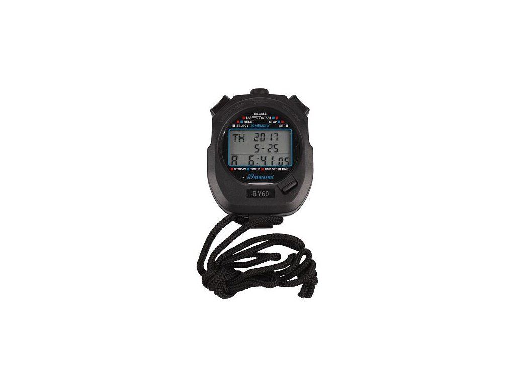 Kvalitné športové stopky Bramasy BY60 so 60 medzičasmi sú praktickou pomôckou na odmeriavanie kratších časových intervalov. Využitie nájdu v celom rade športov, ako napríklad beh, plávanie, cyklistika, atletika, apod. Stopky BY60 sú vhodné ako pre trénerov športovcov, tak pre učiteľov telesnej výchovy i športové krúžky. Vlastnosti: - Čas, dátum, budík, chronograf, odpočítavanie; - Funkcia desatinných stopiek; - Zapnutie/vypnutie, tlačidlo stlmenia, zobrazenie teploty, indikácia slabej batérie; - Trojriadkový displej, rozlíšenie 1/100 za sekundu, počítanie max. do 10 hodín; - 60 pamäťových záznamov s medzičasmi a časmi kôl. : : : :Dodatočné parametre