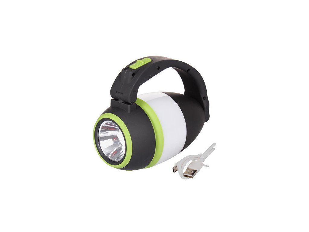 Mať pri sebe silný zdroj svetla je výhodné nielen pri kempovaní alebo rybárčení, ale prakticky všade, kde vás môže zastihnúť tma. Kempingová lampa Camp Light je skvelým riešením pre tieto prípady. Lampa má niekoľko možností využitia - môže vám poslúžiť ako osvetlenie pri kempovaní, ako prenosné svietidlo alebo ako stolová lampa, ktorá má možnosť naklopenia a otočnú hlavicu o 180°. Zdrojom svetla sú LED diódy, ktoré majú 3 možnosti nastavenia svietenia, prepínať ich môžete jedným tlačidlom. Tlmené svetlo, ktoré je vhodné ako nočné osvetlenie, silné svetlo určené pre svietenie ako stolová lampa a baterka, ktorá dosvieti do vzdialenosti 100 - 200 m. Kempingová lampa tiež slúži ako zdroj núdzového prúdu - power banka, ktorá má štandardný USB výstup, ktorým môžete nabiť napríklad svoj mobilný telefón. Konštrukcia svietidla je vyrobená z odolného ABS plastu. Lampa vydrží svietiť 5 - 8 hodín, v závislosti od zvoleného režimu svietenia. Napája sa pomocou zabudovanej lítiovej batérie, ktorá sa dobíja pomocou USB kábla (je súčasťou balenia). Výhodou lampy Camp Light je jej nízka hmotnosť (240 g), vďaka ktorej ju ľahko zbalíte do batohu alebo zavesíte do stanu. Ďalšou výhodou je odolnosť lampy voči dažďu. Parametre: Materiál: odolný plast ABS Váha: 240 g Funkcia: prenosné svietidlo, stolová lampa, kempingové osvetlenie, power banka Napájanie: zabudovaná lítiová batéria 18650 Výdrž batérie: 5 - 8 h Napätie: 3.7 V - 4.2 V Nabíjanie: univerzálne USB rozhranie Svietivosť: 100 - 200 m Vodeodolnosť: IPX45 (odolné voči dažďu) El. výkon: 5 W Svietivosť: 350 : : : :Dodatočné parametre