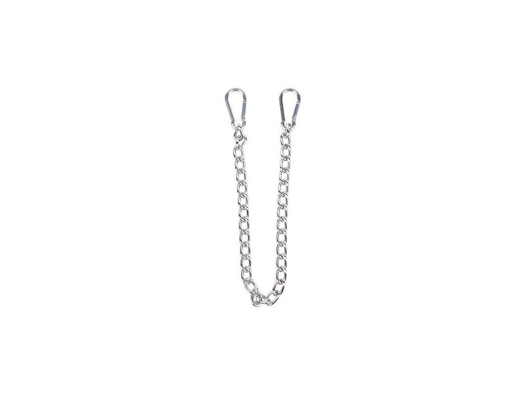 Náhradný reťaz s karabínami Merco Chain 99 využijete doma či na záhrade pre hojdacie siete, boxovacie vrecia, hojdačky, závesné kreslá a pod. Oceľová reťaz má dĺžku približne 87 cm, dĺžka karabín je 7 cm a nosnosť reťaze je do 120 kg. Hmotnosť celého balenia je 460 g. Uvedená cena platí pre 1 ks. - balenie: 2 karabíny + reťaz - materiál: oceľ - dĺžka reťaze 87 cm - dĺžka karabíny: 7 cm - nosnosť 120 kg - hmotnosť balenia: cca 460 g - pre hojdacie siete, boxovacie vrecia, hojdačky, závesné kreslá apod. : : :Dodatočné parametre
