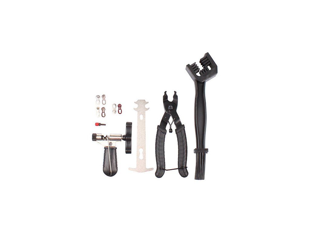 Sada náradia Chain Set 7 od značky Merco je určená na servis a výmenu cyklistickej reťaze. Obsahom balenia je celkom 7 pomôcok. Pre jednoduchú výmenu a rozpojenie reťaze sú súčasťou kliešte na rýchlospojky s pogumovanými rukoväťami. Samotné rýchlospojky sú v balení zastúpené hneď v troch prevedeniach a to: 9S, 10S a >. Ak rýchlospojku na svojej reťazi ešte nemáte, určite budete na rozpojenie potrebovať nitovač. Pri spájaní reťaze s cieľom skrátiť či výmeny odporúčame použiť rýchlospojky alebo zbrusu nové niti. Ako poznať reťaz, ktorá je značne opotrebovaná? Pomocou základnej mierky. Akonáhle mierka do reťaze zapadne, je čas reťaz skrátiť alebo zaobstarať novú. Pre prípad klimaticky náročnejších vychádzok v sade nájdete aj univerzálnu kefu, ktorá sa dostane aj na zle dostupné miesta. Obsah balenia: kliešte na rýchlospojky, nitovač, rýchlospojky, základná mierka, kefa : :Dodatočné parametre