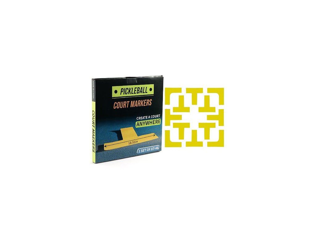 Súprava Merco Court Marker Kit obsahuje žlté značky, ktoré slúžia pre zreteľné ohraničenie kurtu na pickleball. Značky sú vyrobené z odolného silikónu, vďaka ktorému ich môžete používať vonku aj vo vnútri. V balení nájdete 4 kusy značiek v tvare "L" a 8 kusov v tvare "T". Rozmery jednej značky sú 26,7 x 26,7 cm. Na našom e-shope taktiež nájdete sady rakiet pre pickleball. - sada značiek: 4 ks "L" + 8 ks "T" - materiál: silikón - rozmery značky: 26,7 x 26,7 cm - hmotnosť balenia: 0,7 kg : : : :Dodatočné parametre