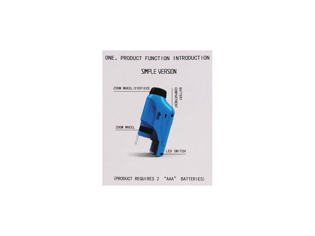 Vreckový mikroskop Merco Explorer 120x je určený pre začínajúcich a hobby bádateľov. Vďaka svojim malým rozmerom a nízkej hmotnosti je mikroskop ľahko prenosný a budete ho mať kedykoľvek po ruke. Kompaktný a výkonný mikroskop ponúka zväčšenie v rozmedzí 60x - 120x s LED svetlom, ktoré je napájané vďaka 2x AAA batérii (batérie nie sú súčasťou balenia). Objavujte nový mikrosvet pomocou prenosného mikroskopu Explorer 120. - materiál: ABS - LED svetlo - rozmery: 10,5 x 5 x 3,5 cm - váha: 80 g - zväčšenie: 60x až 120x - napájanie: 2x AAA batérie (nie sú súčasťou balenia) - na rekreačné použitie Upozornenie: Výrobok nie je vhodný pre deti mladšie ako 3 roky! : : :Dodatočné parametre