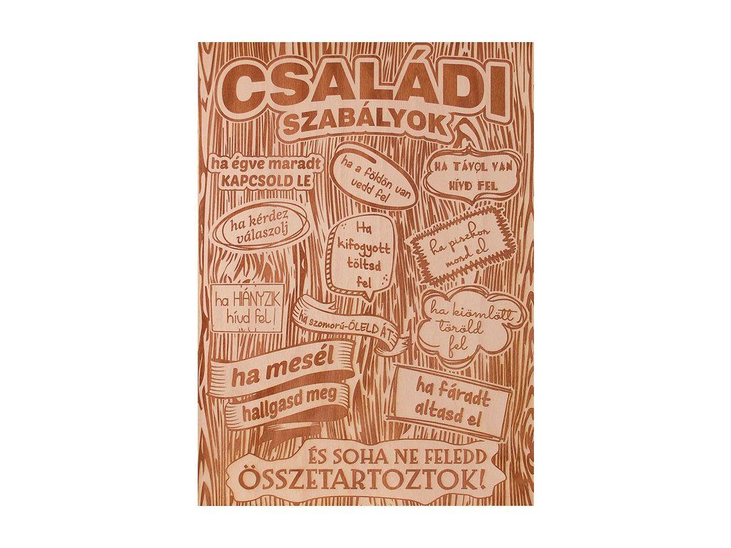 Gravírozott furnér plakett CSALÁDI SZABÁLYOK A5