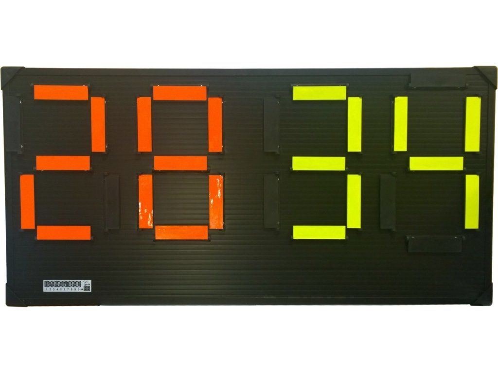 Mechanická obojstranná striedacia tabuľa manuálne nastavovanie číslic od 0 po 99 obojstranné zobrazenie číslic výška číslic: 27 cm rozmery: 85 x 40 cm váha: 1,3 kgDodatočné parametre