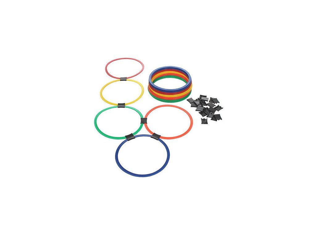 Agility obruče na kondičnú prípravu športovcov. Nápaditejšia varianta agility rebríka. Pomocou 20 kruhov a 25 spojok si vytvoríte trať presne podľa svojich potrieb a požadovanej obtiažnosti. Kruhy sú vyrobené z odolného polypropylénu, majú vonkajší priemer 39 cm, šírku 2 cm a hrúbku 0,5 cm, jeden kruh váži 75 g a celý set potom 1,8 kg. Agility obruče Hoop sú zabalené do sieťovanej tašky s rýchlym sťahovaním pre jednoduchú a pohodlnú prepravu a uskladnenie po tréningu. : :Dodatočné parametre
