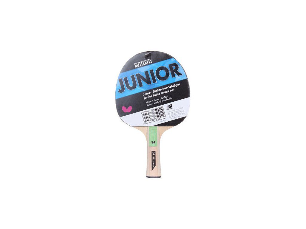 Raketa na stolný tenis Butterfly Junior je vďaka svojej nízkej hmotnosti a užšiemu gripu určená predovšetkým pre deti a mladších hráčov. Raketa je vhodná ako pre pokročilých, tak aj pre začínajúcich hráčov, ktorí sa chcú naučiť základné pingpongové údery. Rýchlosť - 4, rotácia - 10, kontrola - 4. Hmotnosť pálky je 140 gramov. : : : : : : : : : : : : :Dodatočné parametre