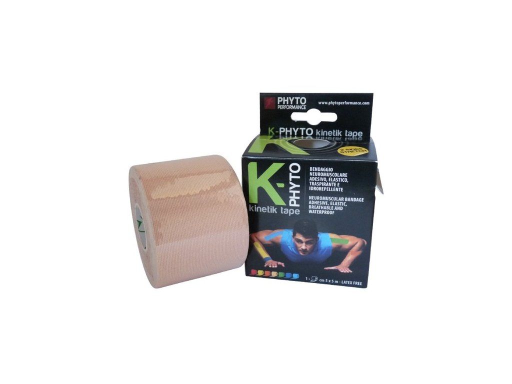 Kineziologický tejp K-PHYTO KINETIK TAPE - je elastická lepivá náplasť, vodeodolná, ktorá zlepšuje biomechanickú činnosť svalov, urýchľuje dobu zotavenia pri svalových zraneniach, znižuje bolesť, zlepšuje krvný obeh. Kód: 01 1230 – 01 1236 Rozmer: 5 cm x 5 mDodatočné parametre