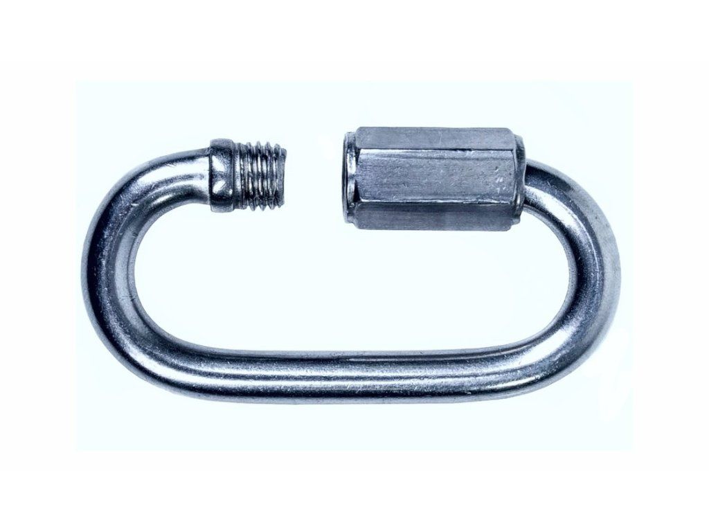 Karabína s maticou pozinkovaná je vhodná na spojenie reťazových článkov a zavesenie ľahkých bremien. Otvára a zatvára sa jednoduchým otočením matice zaisťovacej skrutky. Nosnosť karabíny s maticou je 180 kg (údaj je orientačný). Má všestranné využitie: záhrada, dielňa, šport, priemysel.Dodatočné parametre