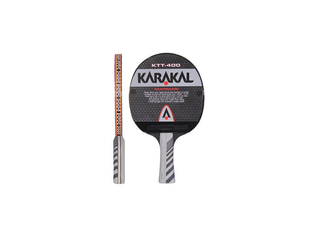 Karakal KTT-400 je štandardná turnajová raketa na stolný tenis, vyrobená zo siedmich vrstiev ľahučké a zároveň tuhé africkej vŕby Abachi. Raketa je vybavená 2 mm silnou hubou, ktorá generuje rýchlosť s rotáciou a útočným poťahom Karakal Gold 30W (ten je o niečo mäkšie, než pri modeli KTT-500). Karakal KTT-400 je pingpongová raketa pre pokročilých hráčov, ktorý preferujú útočný štýl hry. Raketa je vybavená obrysovým obalom na zips. Hmotnosť rakety je 200 gramov. : : : : : : : :Dodatočné parametre