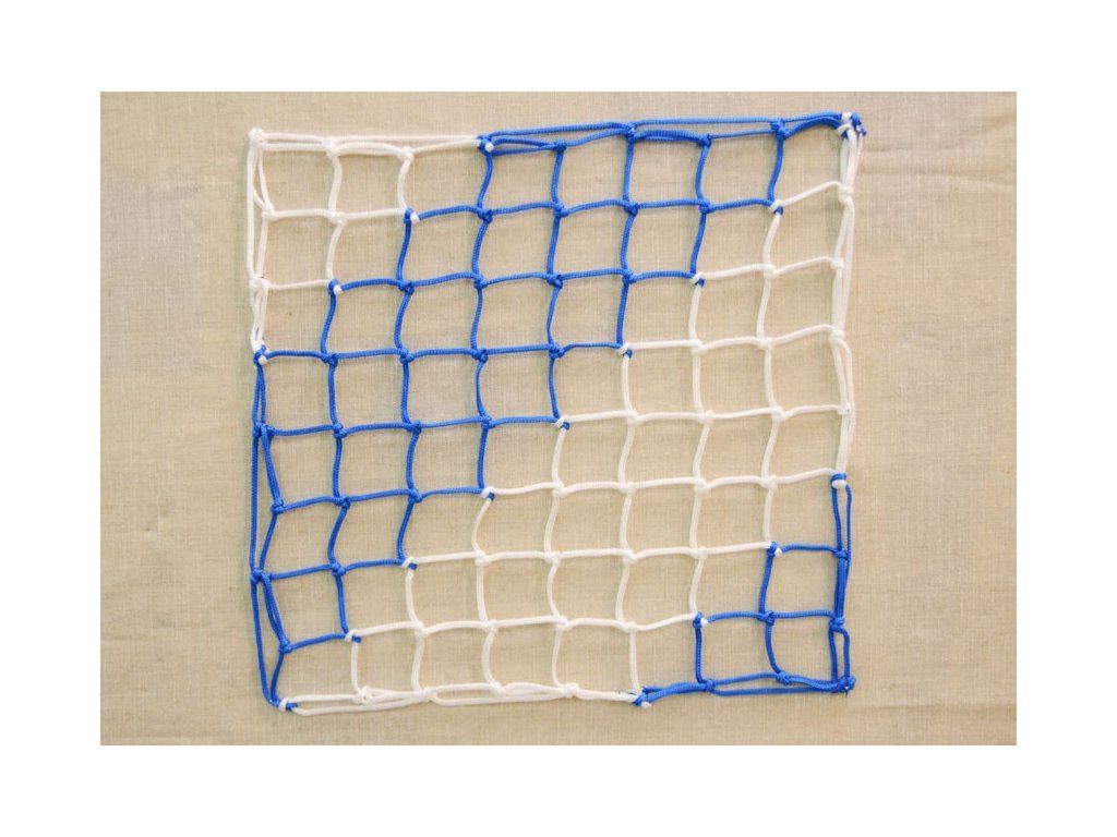Sieť na futbalovú bránku – uzlová Rozmery: Šírka siete: 7,5m Výška siete: 2,5 m Hĺbka siete hore: 0,8 m Hĺbka siete dole: 1,5 m Hrúbka siete: 3 mm Veľkosť oka: 12 cm Použitý materiál: UV stabilizovaný polypropylén Farba biela. Farebné možnosti sietí vyrobených na zákazku: zelená, modro-biela, zeleno-biela, červeno-biela. Šírka farebných pruhov je 60 cm. Balenie 1 ksDodatočné parametre