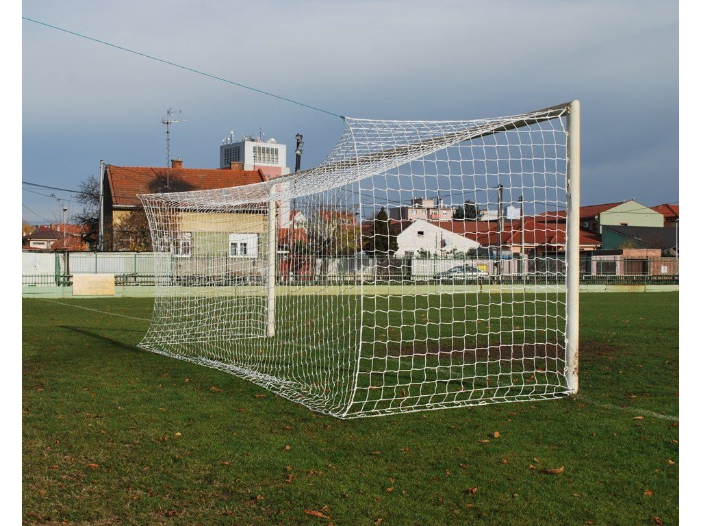 Sieť na futbalovú bránku - uzlová Rozmery: Šírka siete: 7,5m Výška siete: 2,5 m Hĺbka siete hore: 1,8 m Hĺbka siete dole: 1,8 m Hrúbka siete: 4 mm Veľkosť oka: 12 cm Použitý materiál: UV stabilizovaný polypropylén Farba: biela Balenie 1 ksDodatočné parametre