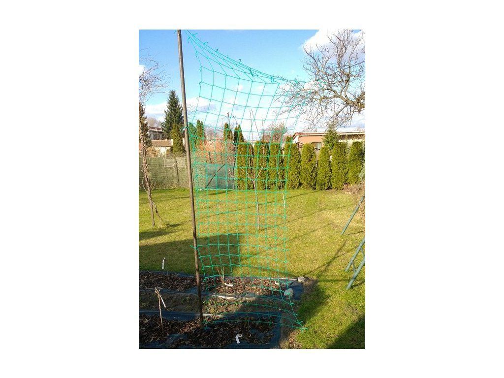 Oporná sieť na popínavé rastliny. Bezuzlová pletená sieť na viacročné použitie. Sieť nie je obšitá. Rozmery: 1,4 x 3m, oko siete 12 cm, hrúbka 3 mm, pevnosť oka 90 kg, farba zelená. Materiál: PolypropylénDodatočné parametre