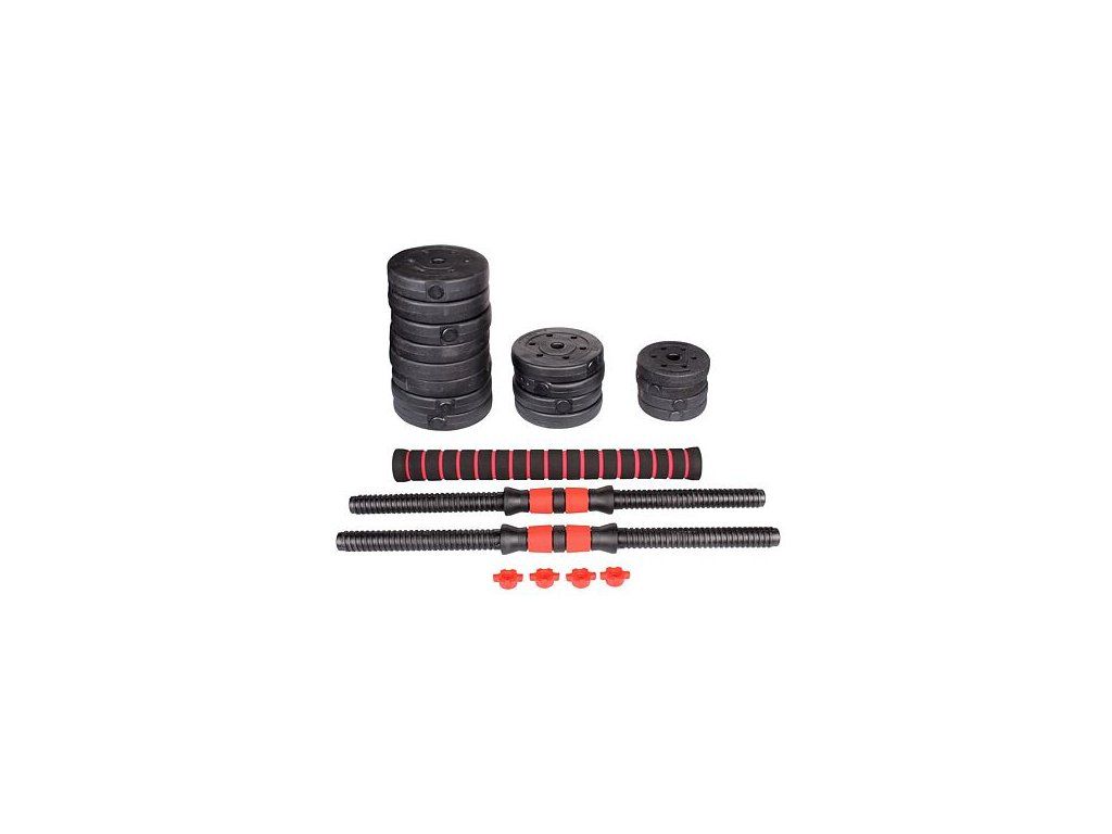 Sada nakladacích činiek Merco Power Set 40 patrí do základného vybavenia každej domácej posilňovne. Oproti klasickým činkám má táto sada veľkú výhodu a to, že Power Set môžete využívať ako dve jednoručné činky alebo ako jednu obojručnú nakladaciu činku. Balenie obsahuje dve jednoručné osi, spojovací diel pokrytý penou a sadu kotúčov, vďaka ktorým si nastavíte celkovú hmotnosť činky až na 40 kg. Ak potrebujete doplniť svoju domácu posilňovňu nielen činkami, pozrite na našu kompletnú ponuku fitness: stroje, lavice a iné pomôcky Power Set 40: - sada: 2x jednoručná osa, spojovací diel, 4x uzáver, kotúče 4 x 1.25 kg + 4 x 2.5 kg + 8 x 3 kg - materiál: plast, cement - jednoručná os: dĺžka 50,5 cm, priemer držadla 3 cm - spojovacia časť obalená penou: dĺžka 39 cm, priemer 4 cm - kotúč 1.25 kg: priemer 16,5 cm, šírka 3 cm - kotúč 2.5 kg: priemer 21 cm, šírka 4 cm - kotúč 3 kg: priemer 22 cm, šírka 4,5 cm : :Dodatočné parametre