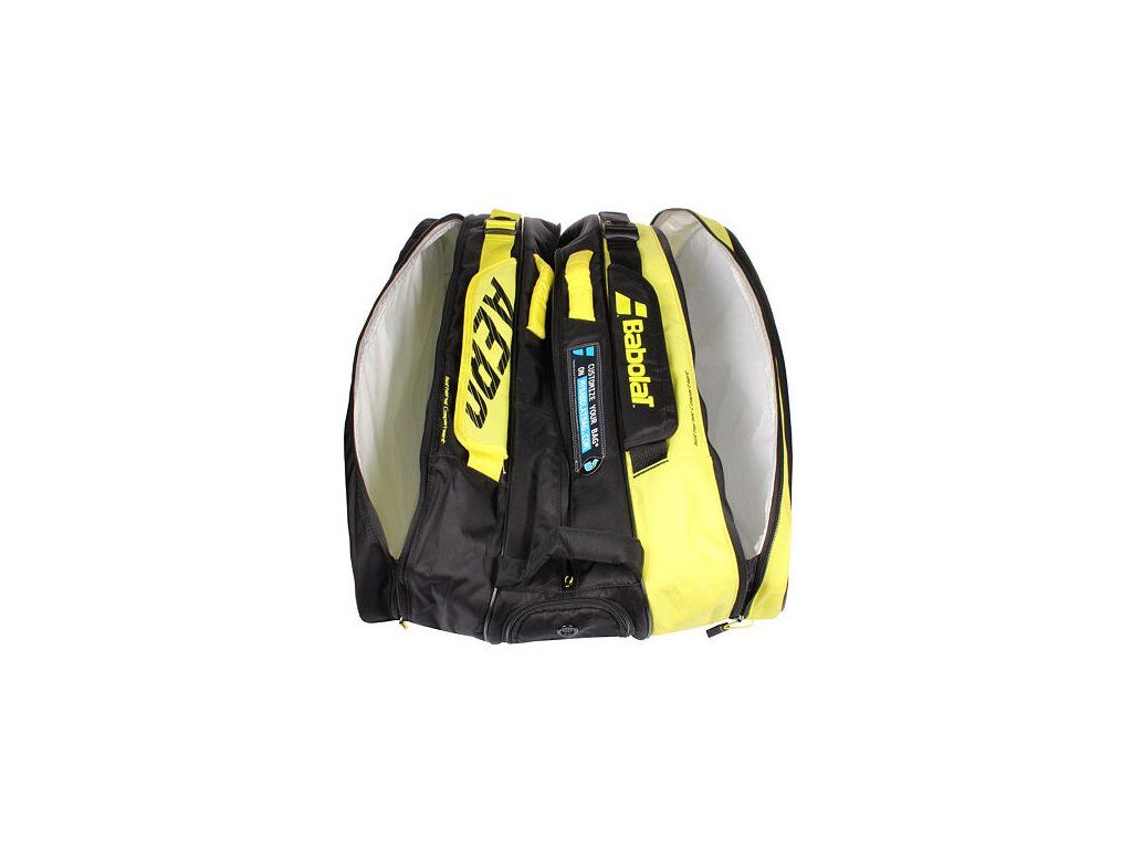 Tenisová taška Babolat Pure Aero RH X12 ponúka veľa úložného priestoru. Záujem nájde u náročnejších hráčov tenisu, i prípadných amatérov. Tenisová taška s rozmermi 75 x 48 x 32 cm je vybavená dvoma hlavnými priehradkami so špeciálnou technológiu Isothermal pre udržanie vašich rakiet v ideálnych teplotných podmienkach. Ďalej ponúka jednu hlavnú priehradku uprostred. Celkový objem tašky je 73 l a dokáže pojať až 12 tenisových rakiet. Po stranách nájdete menšie vrecká, v ktorých sa nachádza ešte ďalšie úložné priestory pre drobnosti a potrebné tenisové vybavenie. Špeciálne sa v tejto taške nachádza v jednej z menších vreciek, prenosný vak na chrbát. Samozrejmosťou je predná priehradka na obuv. Nastaviteľné polstrované popruhy na prenos cez rameno alebo ako batoh je na dennom poriadku a jednoduché madlo ku krátkemu prenosu, tiež ponúka táto unikátna taška od značky Babolat. Ak to s tenisom myslíte naozaj vážne a chcete kvalitný bag pre prenos vášho vybavenia, tenisová taška Pure Aero RH X12 je určite správne rozhodnutie.Parametre:Rozmery: 75 x 48 x 32 cmHmotnosť: 1,5 kgObjem: 73 lFarba: čierna, žltáMateriál: 65% Polyester, 25% PE, 5% TPE, 5% PUMaximálny počet tenisových rakiet: 12 tenisové raketyMožnosť využitia: tenisové rakety, osobné veci na tenis, obuvVrecká: 1x veľká priehradka, 2x veľká thermo priehradka, 2x vonkajšie vrecká po stranách, 1x predné vrecko na obuv, 1x vak na chrbát : : : : : :Dodatočné parametre