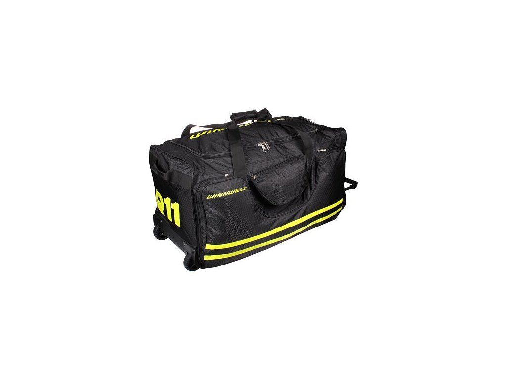 Hokejová taška Winnwell Q11 Wheel Bag je nová odolná taška na kolieskach vyrobená z pevného nylonu a je nástupcom pôvodnej obľúbenej série tašiek Q9. Model Q11 je dostupný tradične vo veľkosti junior 36" a senior 40". Základ tašky tvorí priestorný hlavný panel s otvorom v tvare "U", ktorý umožňuje pohodlné vkladanie kompletnej hráčskej výstroje. Konštrukcia tašky je spevnená plastovým dnom a lyžinami. Na bočnej strane sú dve vrecká, kam je možné oddelene umiestniť korčule a medzi nimi je prostredné vrecko pre drobnosti. Bočné vrecko má v hornej časti sieťovaný materiál pre dokonalé vysychanie a vzdušnosť. Teleskopické madlo zapustené v pevnom ráme a dve väčšie terénne kolieska zaistia pohodlné cestovanie a prenášanie. Je možné využiť aj klasické popruhy na nosenie tašky v rukách. Q11 Wheel Bag SENIOR: - vnútorná teleskopická rukoväť - dve veľké terénne kolieska pre ľahkú prepravu - taška vyrobená z pevného nylonu - predné a bočné vrecká - otváranie horného panelu v tvare písmena U - rozmery senior: 40" x 20" x 18" (100 x 50 x 45 cm) - hmotnosť: 6 kg : : : : : : : :Dodatočné parametre