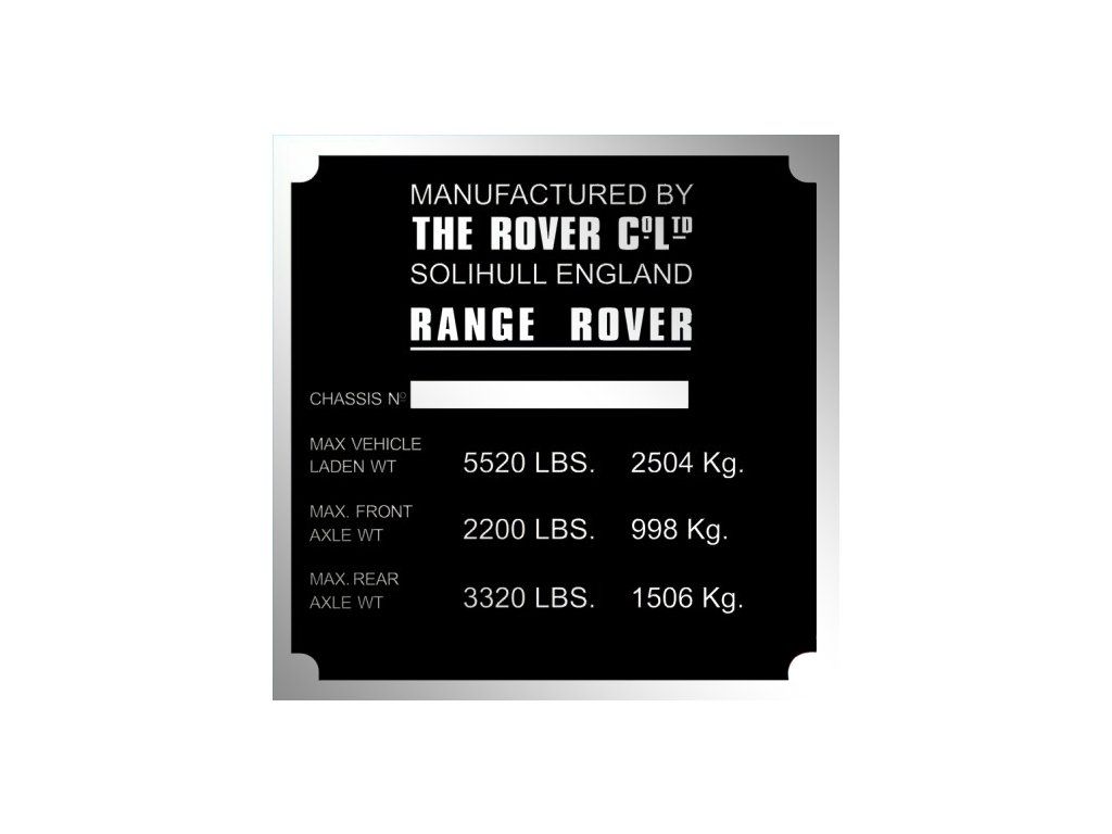 Range Rover výrobný štítok