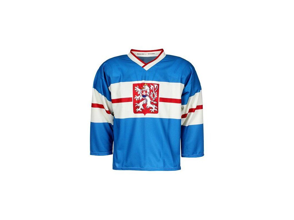 Replika československého hokejového dresu z roku 1947, v ktorom československí hokejisti získali zlatú medailu z majstrovstiev sveta v Prahe. Repliku vo viacerých veľkostiach, vďaka ktorým si vyberú mladší aj starší fanúšikovia. Dres je vhodný pre sublimačnú potlač, môžeme vám tak vytvoriť dres s vlastným číslom a menom podľa vášho priania. Pre túto možnosť uveďte detaily v poznámke pri vytváraní objednávky. : : : : : :Dodatočné parametre