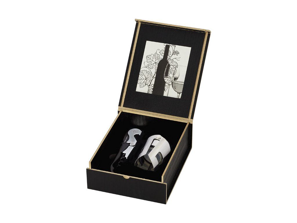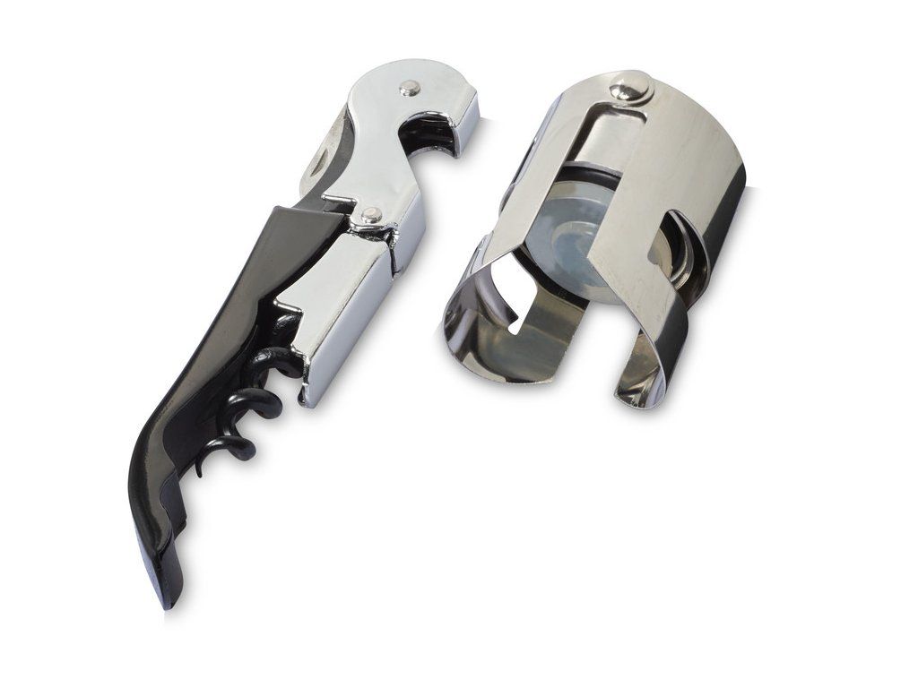 Názov: Sada na víno a šampanské Belgio silver Materiál: drevo, nerezová oceľ a abs plast. farba: čierno strieborná Rozmer: 14 x 5,5 x 12,5 cm Značka: avenue Hmotnosť: 291 g Podrobný popis: Sada na víno a šampanské Belgio. Dvojdielna darčeková sada s čašníckou vývrtkou, ktorá otvorí Vaše obľúbené víno a zátkou na fľašu šampanského. Prezentované v drevenej darčekovej krabičke so štítkom na logo. Drevo, nerezová oceľ a ABS plast.Dodatočné parametre