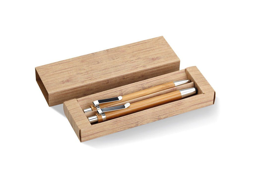 Sada pera a ceruzky z bambusu