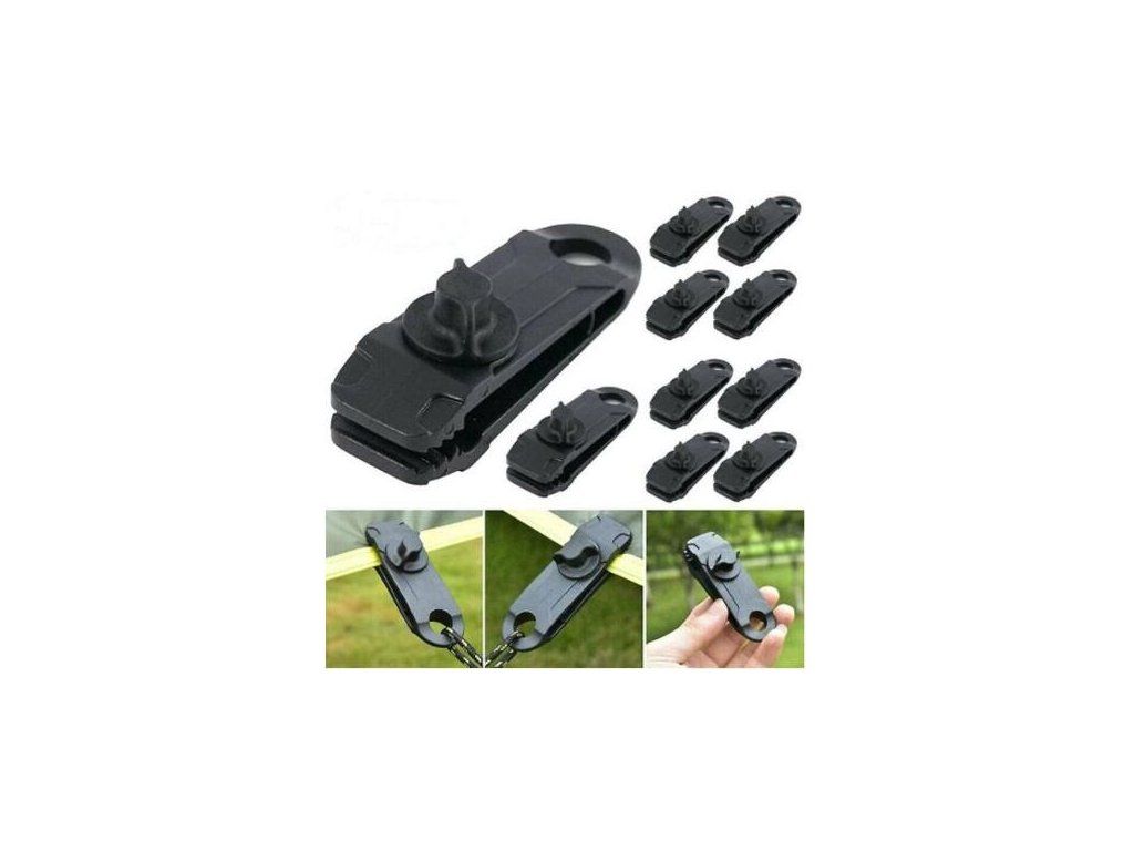 Pokiaľ potrebujete dôkladne vypnúť stan pred búrkou a úchyty už nestačia, v stanovej plachte sú už vytrhané upevňovacie očká, alebo napríklad len chcete nad sebou napnúť celtu medzi stromami, aby vás pri spaní pod širákom neprekvapila ráno rosa, potom určite oceníte univerzálny klip Clip 10. Je vyrobený z pevného plastu a jeho použitie je veľmi jednoduché. Povolíte plastovú skrutku, lem stanu alebo akékoľvek pevnejšie plachty zovrite do ozubeného konca klipu, utiahnete pevne skrutku a do očka na druhom konci priviažete napínacie lanko alebo pritlčiete kolík a plachtu napnete. Klipy ponúkame v sade po 10 kusoch Rozmer jedného klipu: š x d x v: 2,5 x 8 x 1,5 cm Váha jedného klipu: 0,03 kg Váha celého balenia : 0,280 Kg Materiál: tvrdený plast : :Dodatočné parametre