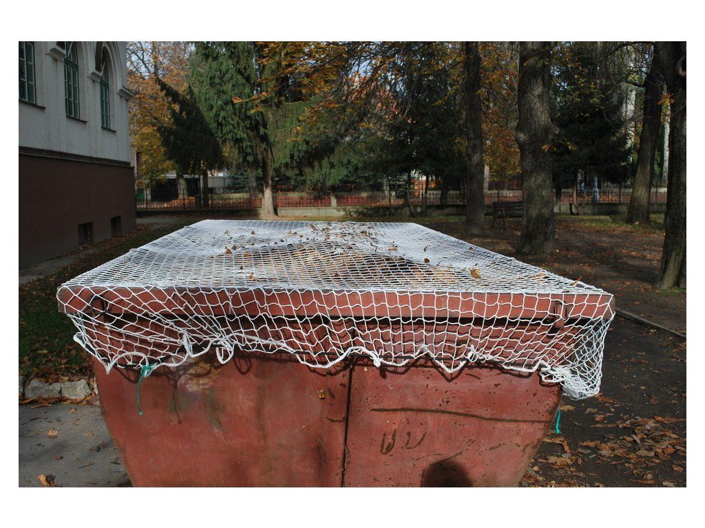 Bezuzlová sieť na kontajner Sieť slúži na zachytenie drobných a ľahkých predmetov počas prepravy v otvorených korbách, kontajneroch. Znižuje znečistenie prírody. Siete sú po obvode zavlečené gumovým lanom. Dĺžka gumového lana je cca 75% odvodu siete. Pružnosť gumového lana je 100%. Rozmery siete: 3,5 x 7 m Hrúbka siete: bezuzlová sieť 3 mm Veľkosť oka: 4 cm Priemer gumového lana: 8 mmDodatočné parametre