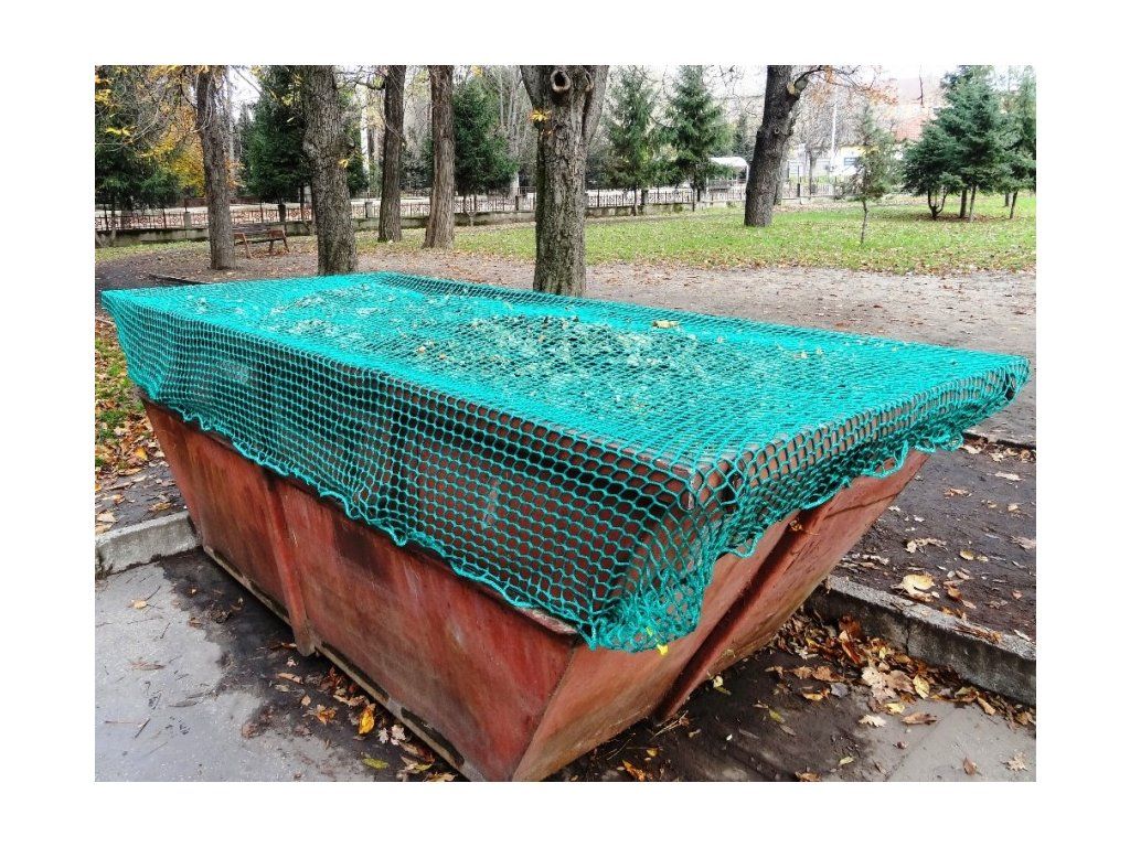 Bezuzlová sieť na kontajner Sieť slúži na zachytenie drobných a ľahkých predmetov počas prepravy v otvorených korbách, kontajneroch. Znižuje znečistenie prírody. Siete sú po obvode zavlečené gumovým lanom. Dĺžka gumového lana je cca 75% odvodu siete. Pružnosť gumového lana je 100%. Rozmery siete: 3,5 x 7 m Hrúbka siete: bezuzlová sieť 4 mm Veľkosť oka: 4,5 cm Priemer gumového lana: 8 mmDodatočné parametre