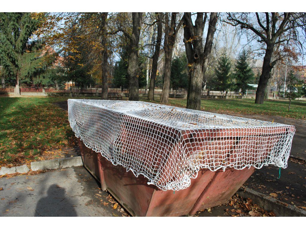 Bezuzlová sieť na kontajner Sieť slúži na zachytenie drobných a ľahkých predmetov počas prepravy v otvorených korbách, kontajneroch. Znižuje znečistenie prírody. Siete sú po obvode zavlečené gumovým lanom. Dĺžka gumového lana je cca 75% odvodu siete. Pružnosť gumového lana je 100%. Rozmery siete: 3,5 x 7 m Hrúbka siete: bezuzlová sieť 4 mm Veľkosť oka: 5 cm Priemer gumové lano: 8 mmDodatočné parametre