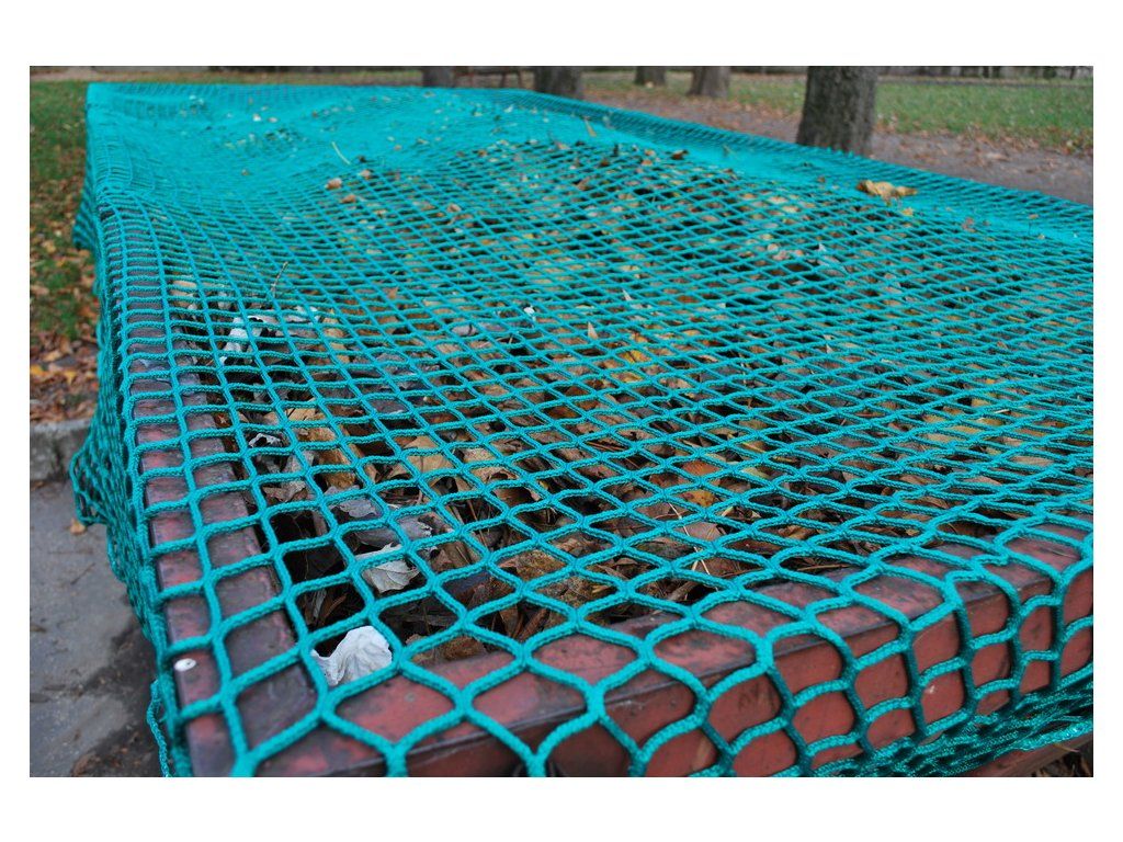Bezuzlová sieť na kontajner Sieť slúži na zachytenie drobných a ľahkých predmetov počas prepravy v otvorených korbách, kontajneroch. Znižuje znečistenie prírody. Siete sú po obvode zavlečené gumovým lanom. Dĺžka gumového lana je cca 75% odvodu siete. Pružnosť gumového lana je 100%. Rozmery siete: 4 x 8 m Hrúbka siete: bezuzlová sieť 4 mm Veľkosť oka: 4,5 cm Priemer gumového lana: 8 mmDodatočné parametre