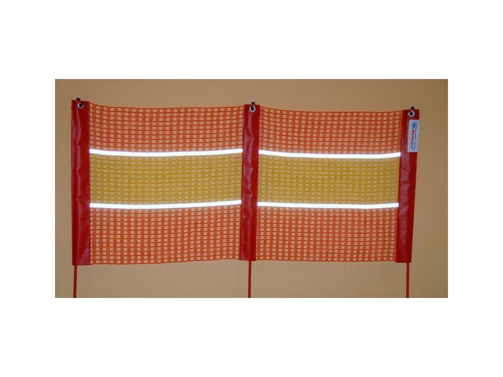 Plot na vytýčenie zjazdoviek a lyžiarskych trás, vrátane laminátových tyčí z PE (polyetylén) Ploty sú vyrobené z výstražnej oranžovo-žltej sieťoviny s reflexnými prúžkami. Vo vzdialenosti 2,5 m sú našité púzdra z červenej pogumovanej tkaniny, do ktorých sa navliekajú laminátové tyče. Ploty sú dodávané ako komplet, vrátane laminátových tyčí s kovovou špičkou. Siete neslúžia na zachytávanie osôb. Parametre: rozmery: 0,90 x 9 m materiá: PE - Polyester - vodou nenasiakavý materiál. výška tyčí: 1,7m počet tyčí : 5ksDodatočné parametre