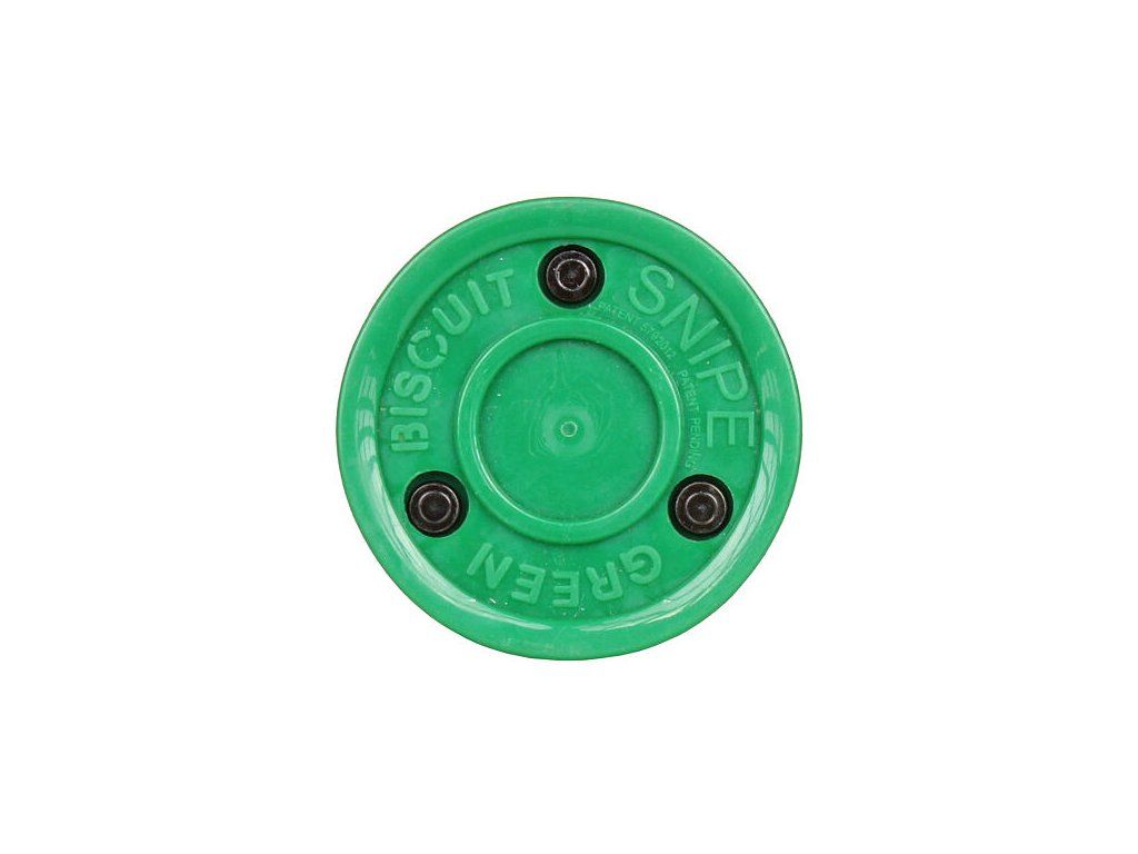 Tréningový puk Green Biscuit Sniper je tréningová pomôcka, s ktorou sa hokejista môže zdokonaľovať aj mimo ľadovú hraciu plochu. Oproti staršiemu typu Green Biscuit sa s modelom Sniper dá trénovať aj streľba. Vďaka špeciálnym materiálom sa tento puk chová rovnako ako puk na ľade. Na druhú stranu sa odporúča čo najrovnejšie plocha na trénovanie, pretože vďaka svojej ľahkej váhe nie je schopný prekonávať veľké nerovnosti ako jeho predchodca. : : : : : :Dodatočné parametre