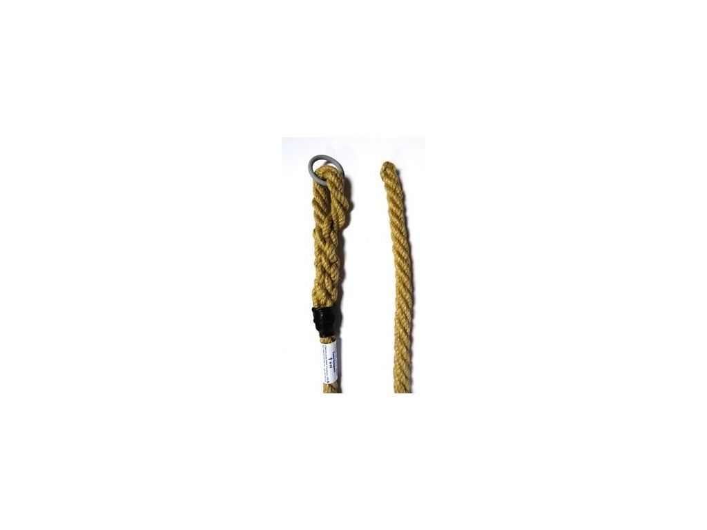 Hojdacie lano je vyrobené z juty o priemere 25mm. Farba: svetlohnedá. Horný okraj je zakončený krúžkom o priemere 6cm.Dodatočné parametre
