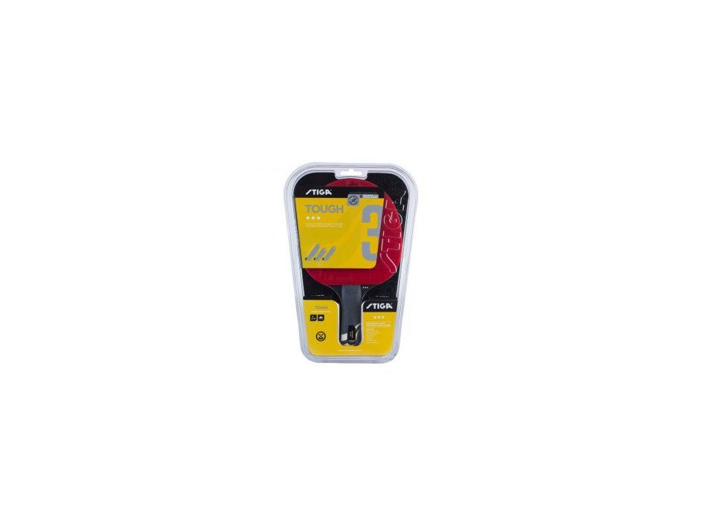 Raketa Stiga TOUGH***, konkávna rúčka. Výborný pomer 3*** rakety s excelentnou rýchlosťou a spinom spolu s vysokou kontrolou a citom. Ofenzívne 5-vrstvové drevo, poťahy certifikované ITTF. Vyvinutá v spolupráci s reprezentáciou Číny, pričom boli použité rovnaké technológie, ako pri výrobe profesionálnych driev.Dodatočné parametre