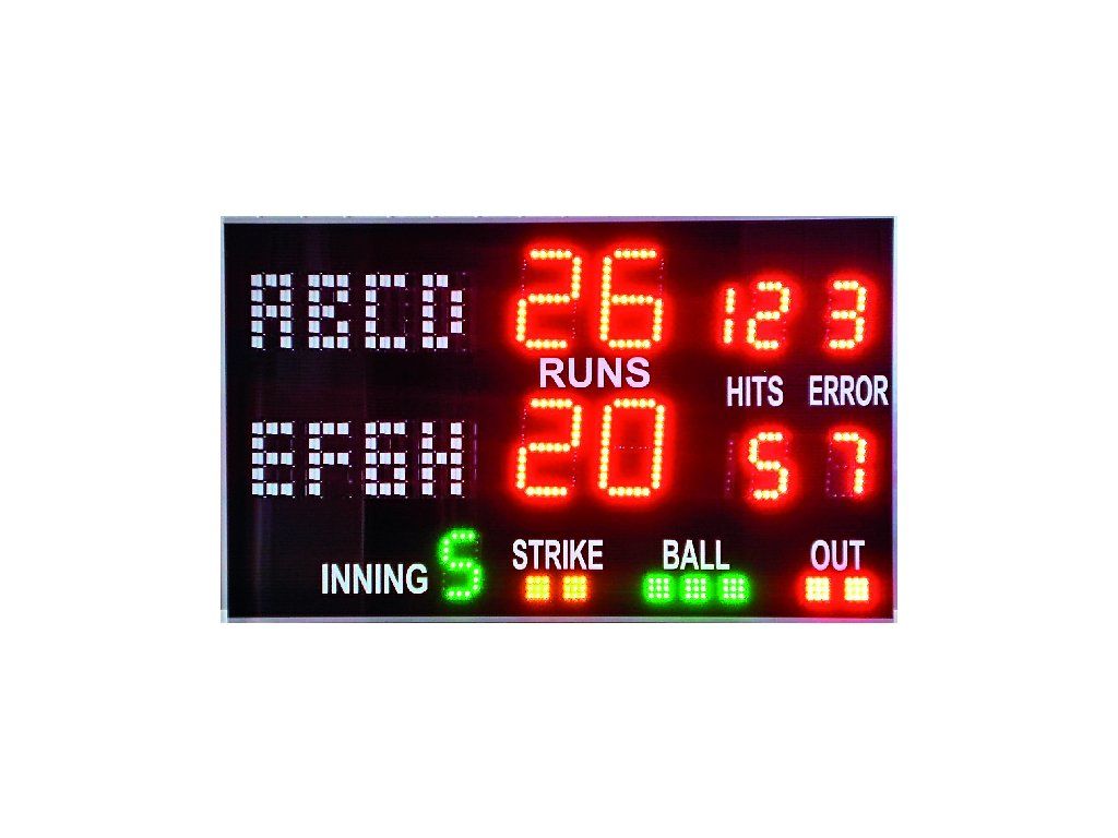 Skóre pre behy, údery aj chyby možnosť upraviť nápisy do slovenčiny možnosť manuálne zadať názvy mužstiev farby LED diód: červená, zelená, žltá výška číslic: 25 cm a 18 cm rozmery: 185 x 100 x 5 cm váha: 7 kg napájanie: 230/12V 4A DCDodatočné parametre