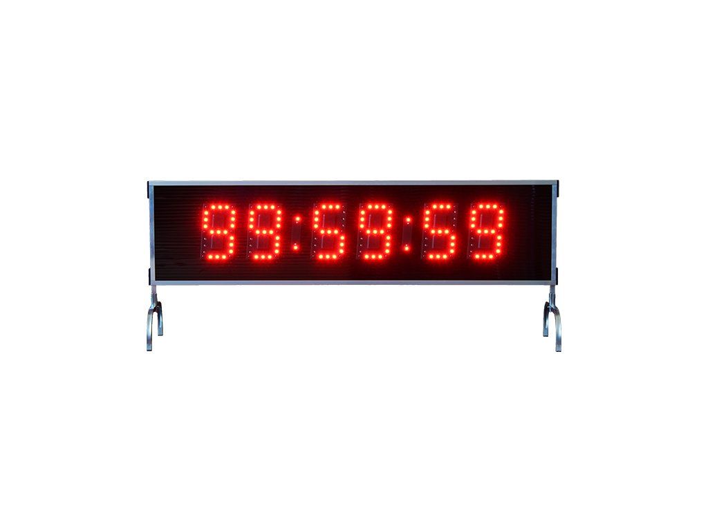 ŠPECIFIKÁCIA: ROZMERY: 110 x 33 x 5 cm HMOTNOSŤ: 3 kg Odpočítavanie času smerom nahor alebo nadol, spustenie/zastavenie, nastavenie MERANIE: Rozsah 1 od 0 do 99:23:59 (Deň:Hodina:Min) Rozsah 2 od 0 do 99:59:59 (Hodina:Min:Sek) Rozsah 3 od 0 do 99:59:99 (Min:Sek:Sek/100) Číslice: výška 18 cm NAPÁJANIE: transformátor 230/12V 4A DC Hodnotiaca tabuľa má hliníkový stojan.Dodatočné parametre
