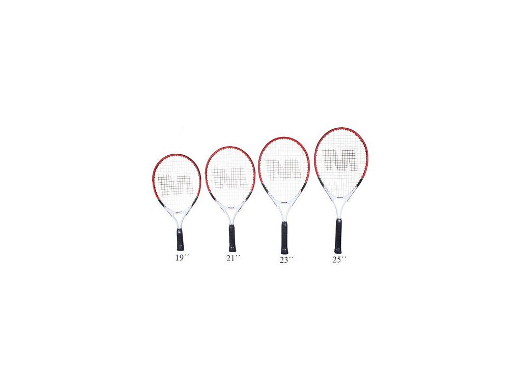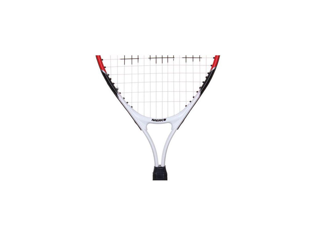 Detská hliníková raketa z kolekcie tenisových rakiet MERCO. Rakety sa dodávajú v 4 rôznych veľkostiach, váha vr. výpletu a doporučenie pre výšku postavy je nasledovné: 19 inch (48,5 cm) .... 185g ..... 110-120cm 21inch (53,5cm) ..... 195g ....... 120 -130cm 23inch (58,5cm) ..... 205g ....... 130-140cm 25inch (63,5cm) ..... 225g ....... 140-150cm V cene rakety českej značky MERCO je tiež obal s popruhom. : : : : : :Dodatočné parametre