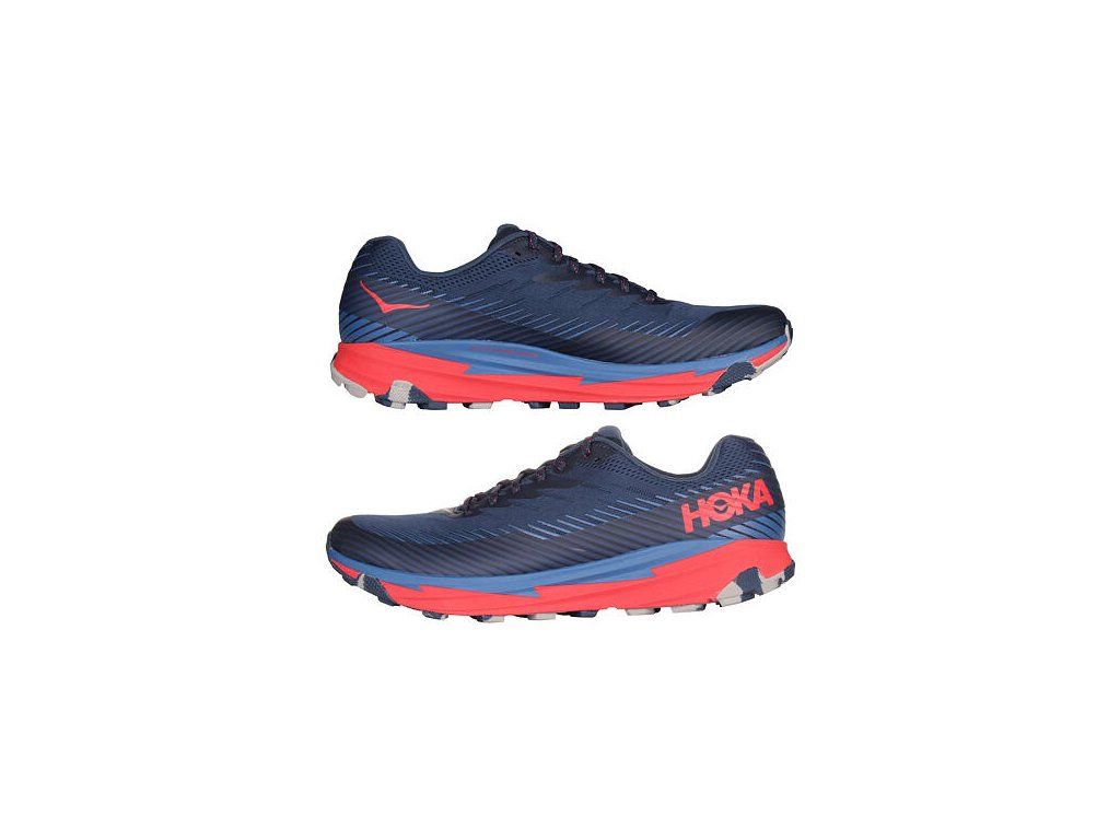 Bežecké topánky HOKA ONE ONE® Torrent 2 sú dizajnované predovšetkým pre výkonnostných bežcov do nestabilného terénu. Obuv je konštruovaná zo zdanlivo protichodnou kombináciou vlastností, pretože majú nízkou hmotnosť (váži 300 g veľkosť UK 12) a zároveň odolnú konštrukciu s drsnou, trvanlivou podošvou. Torrenty sú preto uspôsobené zvládnuť každú lesnú cestu aj rozoklané skalnaté cesty a nerovné kopcovité stúpania. Jednoduchý a pocitovo ľahký pohyb vpred je sprostredkovaný predovšetkým vďaka medzipodrážke HOKA PROFLY™ s hladkým prenosom energie do pätnej časti a späť na špičku s drop 5 mm. Pohodlná stimulácia pohybu je sprostredkovaná komprimovanou EVA penou v oblasti päty 23 mm a s 18 mm v oblasti špičky. Adaptabilné viacsmerné gumové špunty mramorovo sfarbené a mierne lepkavé vonkajšej podošvy stabilizujú každý krok. Oblečte si ľahkú, stabilnú a pohodlnú obuv Torrent 2 a prekonajte drsné nestabilné cesty bez hraníc. Torrent 2: - Zvršok z vrstvených polyesterových vlákien - Drop 5 mm, špička: 18 mm, päta: 23 mm - HOKA PROFLY™ pre plynulý a hladký pohyb vpred - Vzorka s oderuvzdornými 5 mm špunty - Mramorový sfarbená, mierne lepivá vonkajšia podošva : : : : : : : : : :Dodatočné parametre